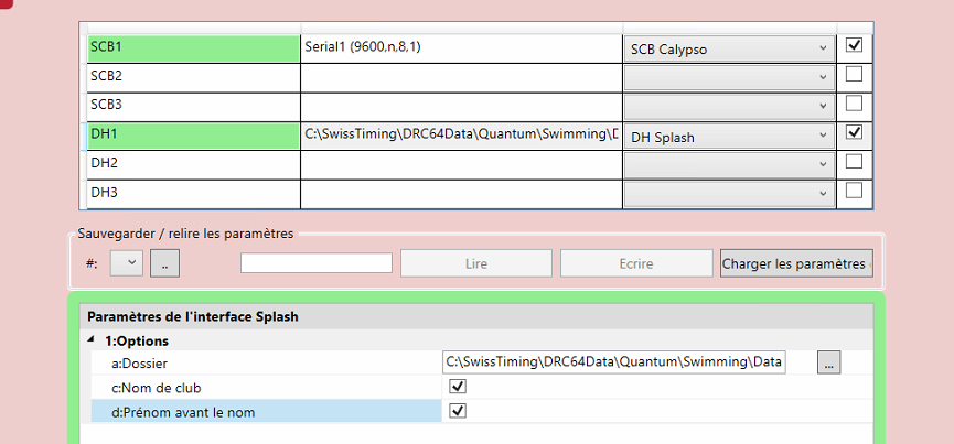 Il faut configurer ce dossier quand le menu "E/S" du Quantum sur l'entrée DH (Data Handling)